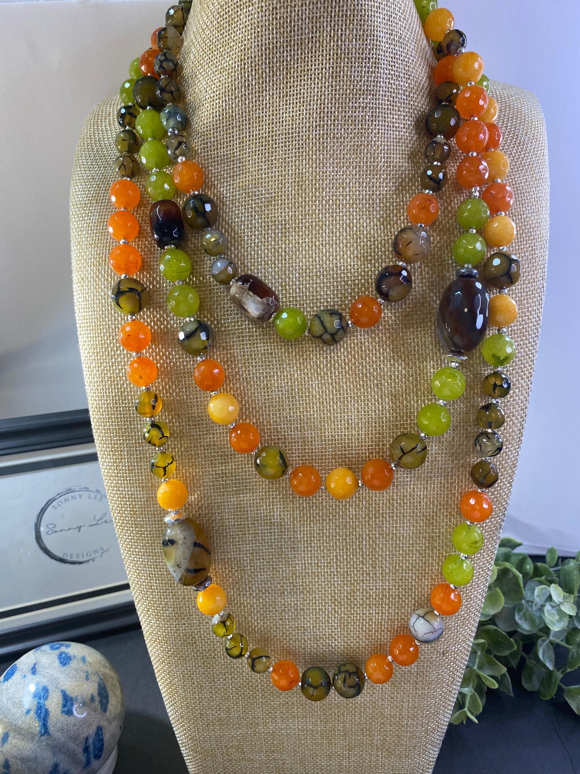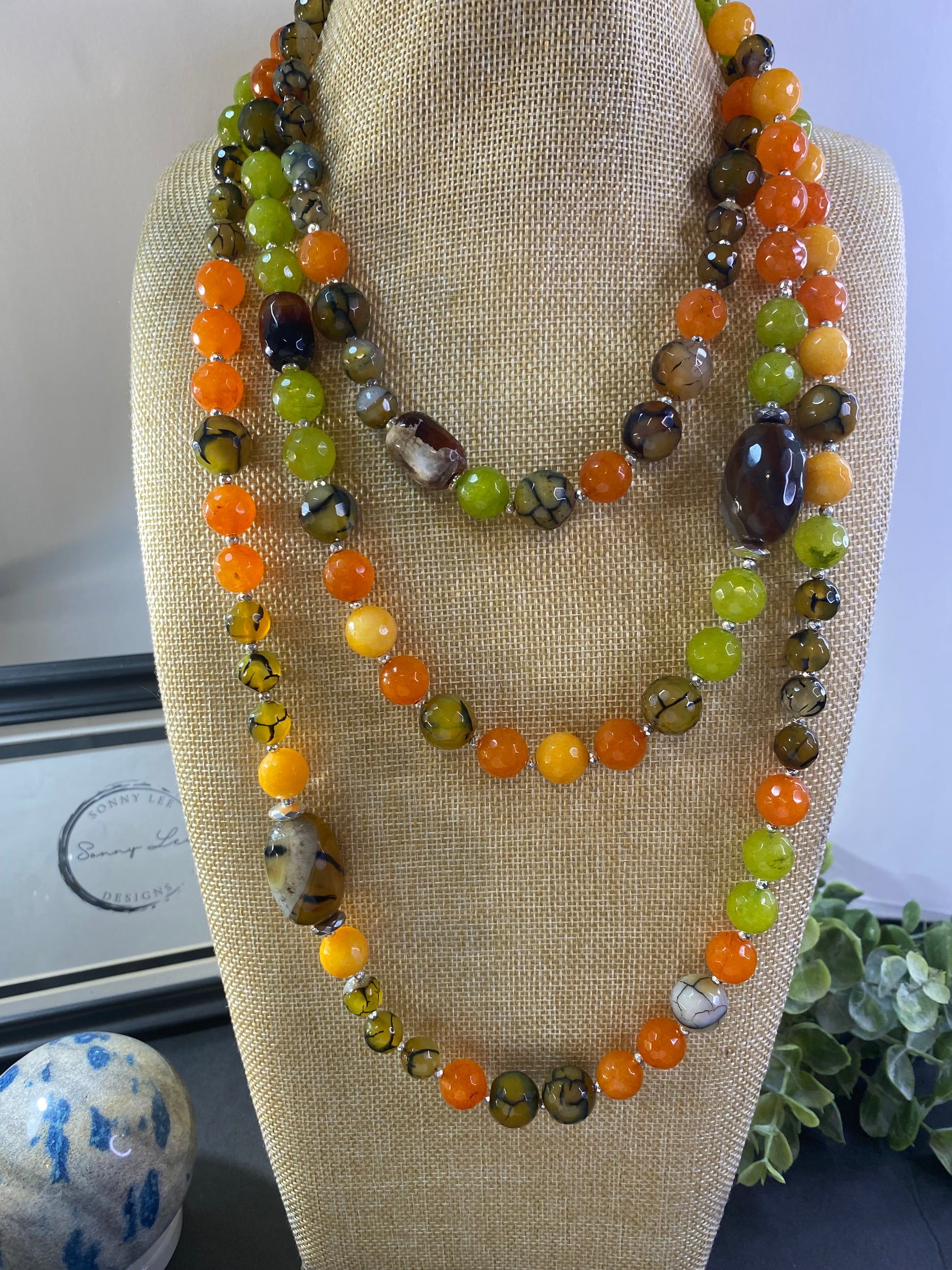 Summer breeze is a wrap necklace that is 72 inches long. Its length allows it to wrap around your neck three times, creating a beautiful and elegant look. This versatile design ensures you can adjust the necklace to the perfect fit, making it the perfect accessory for all your summer looks.